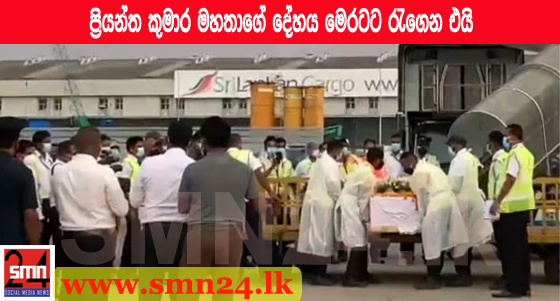Post Views: 361 පාකිස්තානයේ දී ඝාතනයට ලක් වූ ප්රියන්ත කුමාර මහතාගේ දේහයේ අද (6) සවස මෙරටට රැගෙන විත් තිබේ. අනතුරුව දේහය පශ්චාත් මරණ පරීක්ෂණයක් සඳහා මීගමුව දිස්ත්රික් මහ රෝහල වෙත රැගෙන ගොස් ඇත. ඝාතනයට ලක් වූ ප්රියන්ත කුමාර මහතාගේ දේහය පිළිබද පශ්චාත් මරණ පරීක්ෂණයක් පකිස්තානයේදී ද සිදු කරනු ලැබූ අතර එහි වාර්තාව අනුව සියයට 99 ක් පිළිස්සී තිබුණ සිරුර පරීක්ෂා කර පිළිස්සුමට පෙර හිසට හා හකු වලට එල්ලවූ පහර නිසා මරණය අත්වූ බව සඳහන් විය. ඒ මහතාගේ දේහයේ අවශේෂ ශ්රී ලංකාවට භාරදීම සඳහා අද දහවල් ලාහෝර් ගුවන්තොටුපළ වෙත රැගෙන එනු ලැබූ අතර පාකිස්ථාන රාජ්ය ගෞරව ලබාදීමද සිදු කෙරුනි. පාකිස්ථාන අග්රාමාත්ය ඉම්රාන් ඛාන් මහතාගේ විශේෂ නියෝජිත තගීර් අශ්රෆි මහතා මෙන්ම පළාත් අමාත්ය එජාස් අලාම් මහතා එම අවස්ථාවට එක්ව තිබුණි. ප්රියන්ත කුමාර මහතාගේ ඝාතනය සම්බන්ධයෙන් පාකිස්ථාන රජය සැකකරුවන් 200 කට වැඩි පිරිසක් අත්අඩංගුවට ගෙන ඇති අතර ප්රධාන සැකකරුවන් 26 දෙනෙකු පාකිස්ථානයේ ගුජරාන්වාලාහි පිහිටි ත්රස්ත මර්දන අධිකරණයට ඉදිරිපත් කිරීමෙන් පසු බන්ධනාගාර ගත කරන ලදී.දේහයේ අවශේෂ තැන්පත් කර අවසන් ගෞරව දැක්වීම සඳහා ප්රියන්ත මහතාගේ ගනේමුල්ලේ කැන්දලියැද්දපාලුවේ නිවස මේ වන විට සුදානම් කර තිබේ. Post navigation ආයෝජන මණ්ඩල ඉල්ලා අස්වීම් ජනපති ප්රතික්ෂේප කරයි. බැඳුම්කර නඩුවේ චෝදනා 11 කින් රවි ඇතුළු 10 දෙනෙක් නිදහස්.