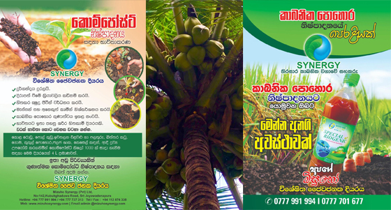 Post Views: 776 ශ්රි ලාංකික සමාගමක් වන මිසුහෝ සිනෙජි ආයතනය විසින් වෙළද පලට හදුන්වා දී ඇති නව සිනෙජි NI කාබනික දියර පොහොර බාවිතයෙන් පොල් , එළවලු ,වී , උක් වැනි භෝග රැසක අස්වැන්න ඉතා සාර්තකව ඉහල නංවා ගත හැකි බව එම පොහොර බාවිතා කරන ඉඩම් හිමියන් ප්රකාශ කරයි. මේ පිළිබඳව වැඩිදුරටත් අදහස් දක්වන එම සමාගමේ කළමණාකාර අධ්යක්ශක තුමන් වන ඉශාන් ගුණසේකර මහතා සහ ප්රධාන විධායක නිළධාරී නිරොශන් ගමගේ මහතා අප සමග ප්රකාශ කර සිටියේ සාම්ප්රදායික කාබනික පොහොර නිශ්පාදයෙන් ඔබ්බට යමින් නව තාක්ෂණය මගින් නිපදවනු ලබන මෙම දියර පොහොර බාවිතය මගින් අස්වැන්න 23% ත් 30ත් අතර වර්ධනය කරගත හැකි අතර ශාක වර්ධනයට අවශ්ය පෝශන සාධක 17 ට අමතරව ස්වාභාවිකව පසෙහි ඇති නයිට්රජන් ශාකයට අවශෝෂනය කරගැනීමට පහසුකරවන රයිසෝබිම් හා ලැක්ටො බැසිලස් ගනයට අයත් ක්ශද්ර ජීවීන් අඩංගු කොට නිශ්පාධනය කොට ඇති මෙම දියර පොහොර දිවයින පුරා බෙදා හැරීමට සිනෙජි සමාගම මේ වන විටත් කටයුතු කරමින් සිටින බවයි. තවදුරටත් අදහස් පල කල ඔව්න් ප්රකාශ කලේ අනෙකුත් සියලු භෝග සදහාද මෙම දියර පෙහොර නව වැඩිදියුණු කල සංයෝග ලෙස වෙලදපෙලට ඉදිරිපත් කිරීමට ඔවුන් බලාපොරොත්තු වන බවයි දියර පොහොර තවද ගොවියන්ට අවශ්ය කොම්පෝස්ට් පොහොර නිශ්පාදනයේදී නිසි ප්රමිතියෙන් යුතු කාබනික පොහොර නිශ්පාදනයට අවශ්ය ක්ශුද්රජීවීන් අඩංගු දියරයක් මේවනවිටත් ඔවුන්විසින් වෙලදපොලට හදුන්වා දී ඇති අතර එමගින් ඕනෑම අයෙකුට කාබනිකපොහොර නිපදවීම ඉතා පහසුවෙන් සිදුකර ගතහැකි බව ඔවුන් විසින් සමාජ මාධ්ය ප්රවෘත්ති සේවාව වෙත ප්රකාශ කර සිටින ලදී . Post navigation මහ කන්නය සඳහා කාබනික පොහොර ආනයනයට කැබිනට් අනුමැතිය. මාස 09 වයසැති බිලිදියක් රයිස් කුකරය නිසා මරුට