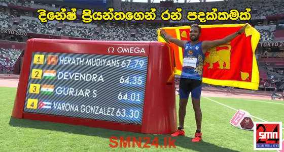 Post Views: 388 ජපානයේ ටෝකියෝ නුවරදී පැවැත්වෙන පැරලිම්පික් උළෙලේදී ශ්රී ලංකා හෙල්ල විසි කිරීමේ ක්රීඩක දිනේෂ් ප්රියන්ත හේරත් නව ලෝක වාර්තාවක් පිහිටුවා තිබෙනවා. ඒ අනුව මෙම ක්රීඩා උළලේදී ශ්රී ලංකාවට පළමු රන් පදක්කම දිනා දීමට දිනේෂ් ප්රියන්ත හේරත් සමත්වී තිබේ. F46 හෙල්ල විසිකිරීමේ ඉසව්වෙන් දිනේෂ් ප්රියන්ත හේරත් විසින් එම නව ලෝක වාර්තාව තබා ඇති අතර ඔහුගේ නව වාර්තාව මීටර් 67.79 ක් ලෙස සටහන් වෙයි. මේවනවිට ලෝක ශ්රේණිගත කිරීම්වල සිව්වන ස්ථානයේ පසුවන දිනේෂ් ප්රියන්ත, 2016 රියෝ පැරාලිම්පික් ක්රීඩා උළෙලේදී එම ඉසව්වේ ලෝකඩ පදක්කම දිනා ගැනීමට සමත් වුණා. Post navigation පෞද්ගලික අංශයේ සේවකයන්ගේ අවම මාසික වැටුප රුපියල් 16,000 ක් බවට නීතිගත කෙරේ පහන්තුඩාව අසභ්ය වීඩියෝව පිලිබදව අපරාධ පරීක්ෂණ දෙපාර්තමේන්තුවෙන් පරීක්ෂණයක්