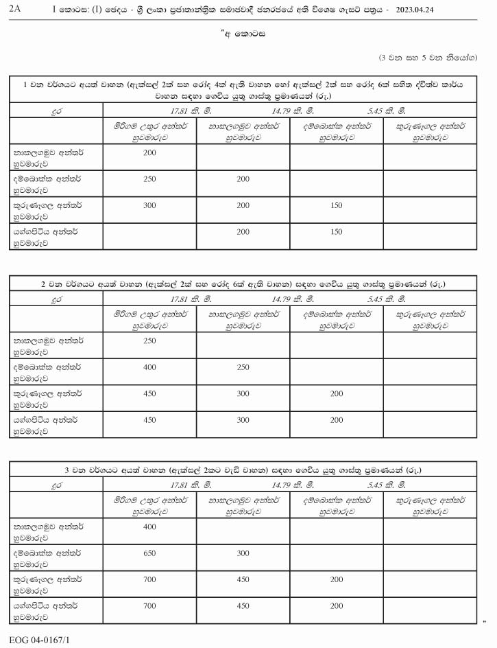 Post Views: 358 ප්රවාහන අමාත්ය බන්දුල ගුණවර්ධන මහතාගේ අත්සනින් නිකුත් කල නවතම ගැසට් නියෝගයක් අනුව අධිවේගී මාර්ග ප්රවේශ ගාස්තු ඉහල නංවා ඇත. මේ සම්බන්ධව වන ගැසට් නිවේදනය පහතින් Post navigation එක්ස්ප්රස් පර්ල් වන්දි වංචාවේ සුලමුල හෙලිවේ ගිණුම් තොරතුරු එළියට. ඉතිහාසයේ පළමුවරට පොලිස්පති තනතුරට කාන්තාවක්.