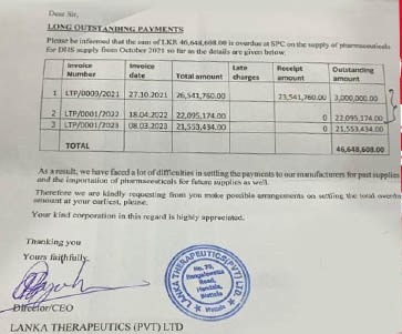 Post Views: 274 සෞඛ්ය අමාත්යාංශය සදහා අවශ්ය ඖෂධ සැපයීම සිදුකරන රාජ්ය ඖෂධ සංස්ථාව විසින් පෞද්ගලික ආයතන වෙතින් ගෙවීමේ පදනම මත ලබාගෙන ඇති ඖෂධ සදහා වූ ගෙවීම් ප්රමාද කිරීම නිසා එම ආයතන බරපතල ගැටළුවකට මුහුණ දී ඇති බව වාර්තා වේ. මේ සම්බන්ධයෙන් එම එක් ආයතනයක් සිහි කැදවීම් කිහිපයක්ම යවා ඇත්ත තවමත් අදාල ගෙවීම් පියවීමට කිසිදු පියවරක් ගෙන නොමැති බවත් එම ආයතනය 2021 වසරේ සැපයුම් කල ඖෂධ සදහා පවා හිග ගෙවීම් ඇති බවත් වාර්තා වේ. තොරතුරු වාර්තා වන ආකාරයට අංක PV00206356 යටතේ ලියාපදිංචි LANKA THERAPEUTICS (PRIVATE) LIMITED නම් හැදල පිහිටි එක් ආයතනයකට මේ වන විට ලැබීමට ඇති හිග මුදල කෝටි 4 1/2 කට අධිකය. Post navigation විශ්රාමික පොලිස් නිළධාරියා සුරූපී කාන්තාවන් යොදාගෙන කරපු වැඩේ පොලීසියට මාට්ටු. වර්ජනය නවතී විශ්වවිද්යාල ආචාර්යවරු වැඩට බසී