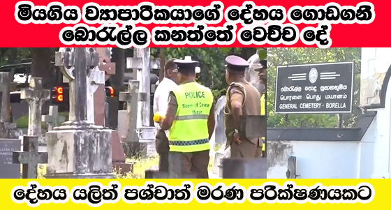 Post Views: 260 හිටපු ප්රකට ව්යාපාරික දිනේෂ් ෂාෆ්ටර් මහතාගේ දේහය යළි ගොඩගැනීම අද (25) උදෑසන බොරැල්ල සුසාන භූමීයේදී සිදු කෙරුනි. ෂාෆ්ටර් මහතාගේ මරණයට හේතුව සෙවීම සඳහා යලි පශ්චාත් මරණ පරීක්ෂණයක් කලයුතු බවත් ඒ සදහා ඔහුගේ දේහය ගොඩගැනීමට අවශ්යව ඇති බව අදාළ මරණය සම්බන්ධයෙන් සොයාබැලීමට පත්කළ පංච පුද්ගල විශේෂ වෛද්ය මණ්ඩලය කොළඹ මහෙස්ත්රාත් අධිකරණය වෙත කල ඉල්ලීමක් අනුව ලබාදුන් අධිකරණ නියෝගය මත මෙම දේහය ගොඩ ගැනීම සිදු කෙරුනි. ඒ අනුව අදාළ දේහය ගොඩගැනීම සඳහා කොළඹ අතිරේක මහෙස්ත්රාත් රජින්ද්රා ජයසූරිය මහත්මිය සමග අදාල පංච පුද්ගල විශේෂ වෛද්ය මණ්ඩලය ඉදිරිපිටදී අද එම දේහය ගොඩගත් අතර දේහය හදුනා ගැනීම සදහා ෂාප්ටර් මහතාගේ පවුලේ ඥාතීන් ද පැමිණ සිටිනු දක්නට ලැබිනි. දේහය ගොඩ ගැනීමේ අවස්ථාව ආවරණය කිරීමට මාධ්යවේදීන්ට එම ස්ථානය අසලට යාමට ඉඩ නොලැබුන අතර බොරැල්ල කනත්ත අවට විශේෂ පොලිස් ආරක්ෂාවක් ද යොදවා තිබුනි. අනතුරුව දේහය හදුනාගැනීමේ කටයුතු වලින් පසුව පශ්චාත් මරණ පරීක්ෂණය සදහා කරාපිටිය ශික්ෂණ රෝහල වෙත යවන ලදී Post navigation අන්තරේට නව කැදවුම්කරුවෙකු පත් වේ. වසන්ත අළුත් ගමනකට මුල පුරයි. අම්බලන්ගොඩ ධර්මාශෝක නියෝජ්ය විදුහල්පතිට වෙඩි තබයි.