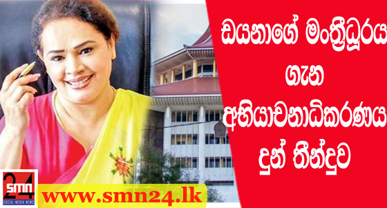 Post Views: 326 රාජ්ය ඇමතිනී ඩයනා ගමගේ මහත්මියගේ පාර්ලිමේන්තු මන්ත්රී ධුරය බල රහිත කිරීමේ රිට් ආඥාවක් නිකුත් කරන්නැයි ඉල්ලා ගොනුකළ පෙත්සමේ තීන්දුව ප්රකාශ කිරීම ජුලි 25 වනදා දක්වා කල්තැබීමට අභියාචනාධිකරණය නියම කළා. අදාළ පෙත්සමේ තීන්දුව අද (06) දිනයේ ප්රකාශයට පත් කිරීමට නියමිතව තිබුණා. එහෙත් අභියාචනාධිකරණයේ සභාපති විනිසුරු නිශ්ශංක බන්දුල කරුණාරත්න හා ඒ මරික්කාර් යන මහත්වරුන්ගෙන් සමන්විත විනිසුරු මඩුල්ල නිවේදනය කළේ අදාළ තීන්දුව ප්රකාහයට පත්කිරීම ලබන 25 වනදා දක්වා කල් තබන බවයි. සමාජ ක්රියාකාරිකයෙකු වන ඔෂල හේරත් මහතා මෙම පෙත්සම ගොනුකර ඇති අතර රාජ්ය ඇමතිනී ඩයනා ගමගේ මහත්මිය බ්රිතාන්ය පුරවැසිභාවය හිම තැනැත්තියක් බැවින් ඇයට මෙරට පාර්ලිමේන්තුවේ අසුන් ගැනීමට සුදුසුකමක් නොමැති බවට තීන්දු කරන ලෙස ඉල්ලා ඔහු මෙම පෙත්සම ඉදිරිපත් කර ඇත. Post navigation පාදුක්ක තැපැල් කාර්යාලයෙන් හැමෝටම ලියුම් වෙනුවට බෙදපු දේ “සමාජ මාධ්ය හරහා සිදුකරන මූල්ය වංචා ඉහල ගිහින්. පුද්ගලික තොරතුරු කිසිවෙකුටත් දෙන්න එපා.” පොලීසිය කියයි.
