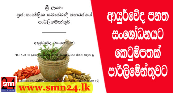 Post Views: 259 දැනට මෙරට ක්රියාත්මක වන 1961 අංක 31 දරණ ආයුර්වේද පණත සංශෝධනය කිරීම සදහා වන පනත් කෙටුම්පතක් පාර්ලිමේන්තුවට ඉදිරිපත් කර ඇත. අදාල පනත් කෙටුම්පත සෞඛ්ය අමාත්යවරයා විසින් ඉදිරිපත් කර ඇති අතර, ඒ මගින් කාලාන්තරයක් පුරා සංශෝධනයට ලක්නොවූ ආයුර්වේද පනතේ වගන්ති, යෙදුම් හා නිර්වචන ගණනාවක් යාවත්කාලීන කිරීමට කටයුතු කර ඇත. මේ යටතේ මහා පරිමාණ ඔසු වගාවන් සිදු කිරීමට අවකාශ සැලසෙන අතර ආයුර්වේද ඔසුවක් ලෙසට ගංජා වගාව සිදුකිරීමට ඉඩ ලබාදීමටද හැකියාව ලැබේ. පනත් කෙටුම්පත ලබා ගැනීමට පහත සබැදියට යන්න https://drive.google.com/file/d/1OI0sB-lupNbpn_oWZugvediMNuxg0bBL/view?usp=drive_link Post navigation ග්රාම නිලධාරීවරුන් සාම විනිසුරුවරුන් බවට පත් කරමින් ගැසට් නිවේදනයක් INSEE සිමෙන්ති සමාගමෙන් රණවිරුවන් සඳහා සහන මිලට සිමෙන්ති.