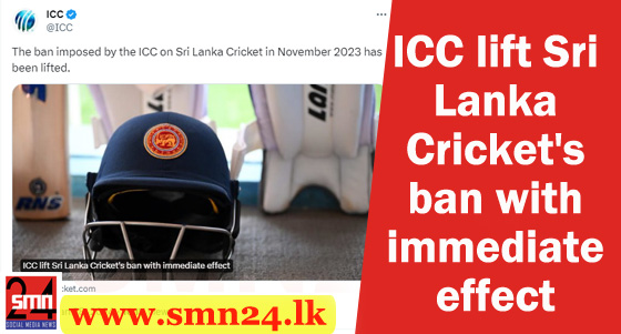 Post Views: 455 SLC were banned in November for breaching obligations as an ICC Member.The International Cricket Council lifted the ban on Sri Lanka Cricket (SLC) today with immediate effect. On 10 November 2023, Sri Lanka Cricket (SLC) were suspended for violation of responsibilities as an ICC Member, in particular, “the requirement to manage its affairs autonomously and ensure that there is no government interference in the governance, regulation and/or administration of cricket in Sri Lanka.” The ICC Board met on 21 November and it was decided that Sri Lanka can continue to compete internationally both in bilateral cricket and ICC events, but the ongoing U19 Men’s Cricket World Cup was moved to South Africa, having initially been set to be played in Sri Lanka. The ICC Board has been monitoring the situation since the suspension and are now satisfied that SLC are no longer in breach of membership obligations.Join SMN24Media WhatsApp grouphttps://chat.whatsapp.com/I3bIbUXEdpG8wz2ub8Tk6oFacebookhttps://facebook.com/smn24news Post navigation ප්රථමවරට දේශීය වෛද්ය ව්යවසායකයන් ඇගයීමට රන් සම්මාන උළෙලක්. ශ්රී ලංකා – ඇෆ්ගන් එක්දින තරග තුන සදහා සංචිතය නම් කරයි.