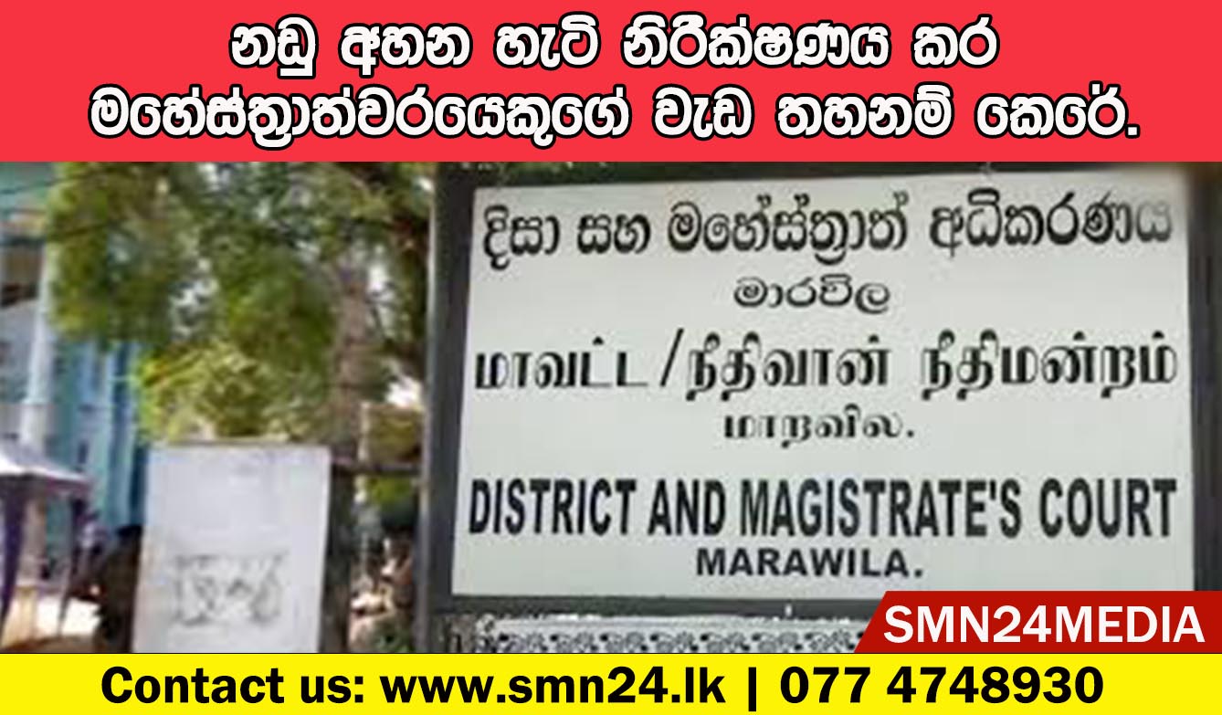 Post Views: 205 මෙරට ඉතිහාසයේ ප්රථම වතාවට අධිකරණ සේවා කොමිසම නියෝජනය කරන ජ්යේෂ්ඨ විනිසුරුවරුන් දෙදෙනකු සිදුකල පෞද්ගලික නිරීක්ෂණයකින් පසු මහෙස්ත්රාත්වරයකුගේ වැඩ තහනම් කර තිබෙනවා. මෙසේ වැඩ තහනම් කර ඇත්තේ මාරවිල මහෙස්ත්රාත්වරයාගේ යි. නීතිඥයකු සහ නඩුවක පාර්ශවකරුවකු ලෙස සැරසුණු අධිකරණ සේවා කොමිසම නියෝජනය කරන ශ්රේෂ්ඨාධිකරණ විනිසුරුවරුන් වන ප්රීති පද්මන් සූරසේන සහ ගාමිණී අමරසේකර මහත්වරු මාරවිල මහේස්ත්රාත් අධිකරණයට ගොස් මෙම මහෙස්ත්රාත්වරයාගේ අධිකරණ කටයුතු රහසිගතව නිරීක්ෂණය කර තිබෙනවා. අදාළ මහෙස්ත්රාත්වරයාට එරෙහිව ලැබුණු පැමිණිලි කිහිපයක් හේතුවෙන් මෙම පරීක්ෂාව සිදු කර ඇති අතර නඩු කටයුතු නිරීක්ෂණය කිරීමෙන් සහ සාක්ෂි රැස් කිරීමෙන් පසු, දිවා ආහාර විවේකයේ දී මහෙස්ත්රාත්වරයාගේ කුටියේ දී ම ඔහු හමු වූ විනිසුරුවරු, ඔහුගේ පැහැදිලි කිරීම්වලින් සෑහීමකට පත් නොවීම නිසා ඒ මොහොතේ ම විනිසුරුවරයාගේ වැඩ තහනම් කර ඇති බවයි වාර්තා වන්නේ.එක්වන්න අපගේ සමාජ මාධ්යය ජාලා සමග…🛑ෆේස් බුක්/facebook https://facebook.com/smn24news🛑යූ ටියුබ්/youtube www.youtube.com/@smn24news🛑ටෙලිග්රෑම්/Telegram t.me/LDVNftqjNP1hM2Zl🛑බ්ලොග්/Blogger https://smn24news.blogspot.com🛑ට්විටර්/Twitter (X) twitter.com/smn24lk🛑ටික්ටොක්/tiktok https://vt.tiktok.com/ZSF55Fjqt/🛑වට්ස් ඇප්/WhatsApp https://chat.whatsapp.com/I3bIbUXEdpG8wz2ub8Tk6o Post navigation බූස්ස බන්ධනාගාරයේ රැඳවියෙකු මිය යාම සම්බන්ධයෙන් පුළුල් විමර්ශනයක්. ගුණාත්මක සෞඛ්ය සේවාවක් මෙරට තුළ තහවුරු කිරීම සෞඛ්ය අමාත්යාංශයේ අරමුණයි. සෞඛ්ය ඇමති කියයි.