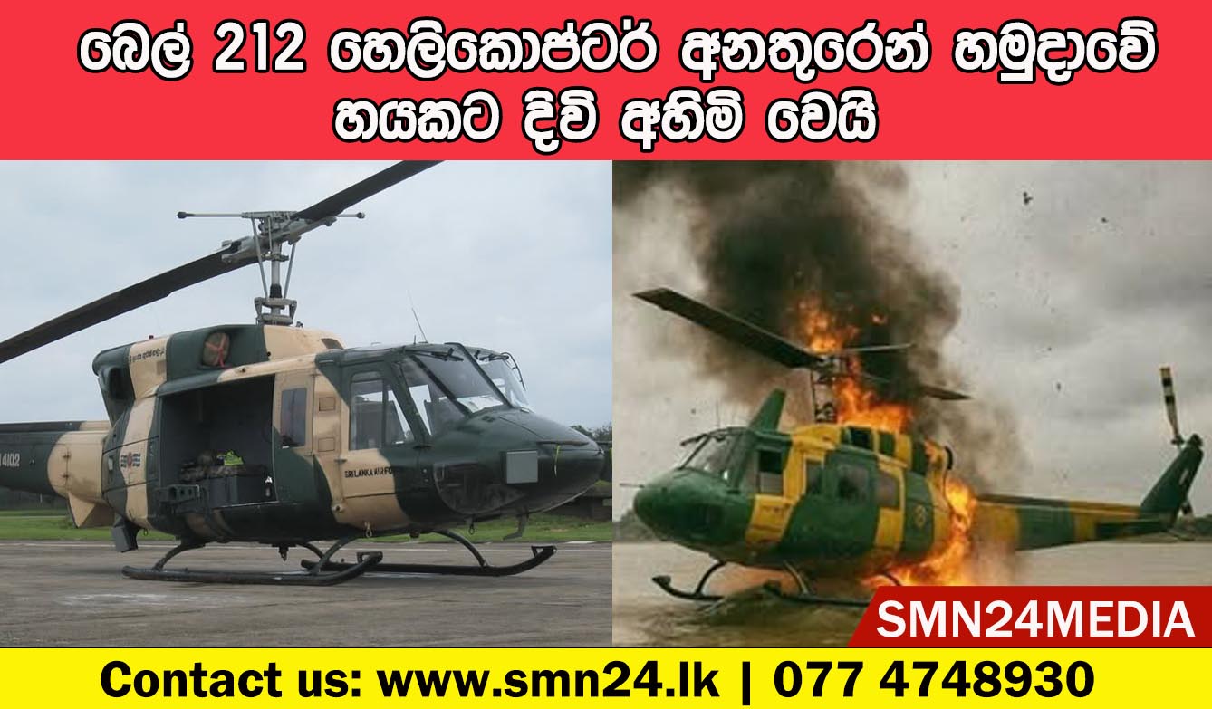 Post Views: 102 ශ්රී ලංකා ගුවන් හමුදාවට අයත් Bell 212 හෙලිකොප්ටර් යානයක් අද උදෑසන මාදුරු ඔය ප්රදේශයේදී පුහුණු මෙහෙයුමක් අතරතුර අනතුරට ලක් වි ඇත. හෙලිකොප්ටර් යානය විශේෂ බලකා සෙබලුන් කන්ඩායමක් සමග හිඟුරක්ගොඩ ගුවන් හමුදා කඳවුරෙන් ගුවන් ගත වී ඇති අතර තාක්ෂණික දෝෂයක් එම අනතුරට හේතු වි ඇති බව සඳහන් වේ. A Sri Lanka Air Force (SLAF) Bell 212 helicopter crashed in the Maduru Oya area earlier today while on a routine training mission. The helicopter had taken off from the Hingurakgoda Air Force Base with special forces troops when it encountered technical difficulties, leading to the crash. Post navigation වැඩ තහනම් පොලිස්පති දේශබන්දු තෙන්නකෝන්ට ආපූ අලුත්ම නියෝගය. Court grants leave for petition to disqualify Ramanathan Archchuna as MP