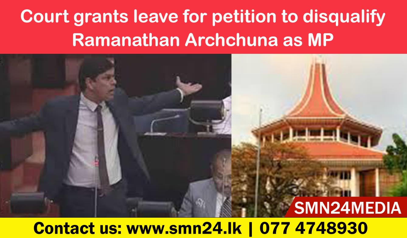Post Views: 169 The Court of Appeal has fixed for hearing a case filed seeking to disqualify Jaffna District Independent MP Ramanathan Archchuna from holding a parliamentary seat. Accordingly, the court ordered the petition to be taken up to confirm the facts on June 26, 2025. The petition, filed by social activist Oshala Herath, was taken up before the two-member Appeals Court bench comprising Justices Mayadunne Corea and Mahen Gopallawa this morning (14). යාපනය දිස්ත්රික් ස්වාධීන මන්ත්රී රාමනාදන් අර්චුනා මහතා පාර්ලිමේන්තු මන්ත්රී ධුරයක් දැරීමට නුසුදුසු බවට ප්රකාශ කරන ලෙස ඉල්ලා ගොනු කර ඇති පෙත්සමක් විභාග කිරීමට අභියාචනාධිකරණය දින නියම කර තිබේ. ඒ අනුව, කරුණු තහවුරු කිරීම සඳහා අඳාල පෙත්සම 2025 ජුනි 26 වන දින විභාගයට ගැනීමට අධිකරණය නියෝග කළේය. සමාජ ක්රියාකාරික ඕෂල හේරත් විසින් ගොනු කරන ලද මෙම පෙත්සම, අද (14) මායාදුන්නේ කොරයා සහ මහේන් ගොපල්ලව යන විනිසුරුවරුන්ගෙන් සමන්විත ද්වි පුද්ගල අභියාචනාධිකරණ විනිසුරු මඩුල්ල ඉදිරියේ කැඳවන ලදී. Post navigation බෙල් 212 අනතුරෙන් හමුදාවේ පහකට දිවි අහිමි වෙයි. උතුරු පළාත තුළ පිහිටි ප්රාදේශීය රෝහල් විශේෂ පස් අවුරුදු සැලැස්මක් යටතේ සංවර්ධනය කිරීමට පියවර.