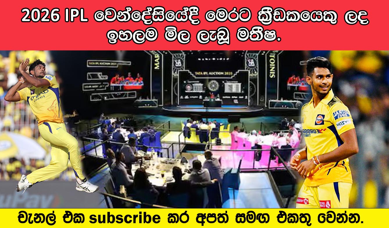 Post Views: 62 එළඹෙන ඉන්දීය ප්රිමීයර් ලීග් IPL තරගාවලිය සදහා ක්රීඩක වෙන්දේසිය අබුඩාබියේ එතිහාඩ් ක්රීඩාංගණයේදී පැවැත්වුනු අතර මෙවර IPL 2026 වෙන්දේසිය සඳහා ඉන්දීය ක්රිකට් ක්රීඩකයින් 246 දෙනෙකු සහ විදේශීය ක්රීඩකයින් 113 දෙනෙකු ඇතුළුව ක්රීඩකයින් 359 දෙනෙකු වෙන්දේසි සංචිතයේ සිටින ලදී. මින් ලීගයේ ෆ්රැන්චයිස් 10 උපරිම ස්ථාන 77 ක් සඳහා ලංසු තැබීම කල අතර මෙයින් 31 ක් විදේශීය ක්රීඩකයින් සඳහා වෙන් කර තිබුනි. මෙවර වෙන්දේසියේදී මෙතෙක් ශ්රී ලාංකික ක්රීඩකයෙකු ලද ඉහලම ලංසුව ලෙස ඉන්දීය රුපියල් කෝටි 18 කට (ශ්රීලංකා රුපියල් කෝටි 61) මතීෂ පතිරණ ලබා ගැනීමට කොල්කටා නයිට් රයිඩර්ස් සමත් වූයේ ඉන්දීය රුපියල් කෝටි 17.8 ක ලංසුව ඉදිරිපත් කල ලක්නව් සුපර් ජයන්ට්ස් පරදවමිනි. 2002 දෙසැම්බර් 18 දින උපන් හීනටිගල පතිරණගේ මතීෂ අනුෂාල් විහංග පතිරණ, නැතහොත් මතීෂ පතිරණ මේ වන විට ඉතා දක්ෂ සහ ජනප්රිය, වෘත්තීය ක්රිකට් ක්රීඩකයෙකි. දැනට ජාතික කණ්ඩායම සඳහා සීමිත ඕවර ජාත්යන්තර තරඟ ක්රීඩා කරන ඔහු ලසිත් මාලිංග ගේ පන්දු යැවීමේ ඉරියව්ව ආදර්ශනය කර ඇති බැවින්, “බේබි මාලිංග” ලෙසත් හඳුන්වනු ලැබේ. Post navigation ශ්රී ලංකාවේ හරිත ප්රවාහන ක්ෂේත්රය තුළ නව පියවරක් සනිටුහන් කරමින් SINGER විසින් TAILG විද්යුත් යතුරුපැදි හඳුන්වා දෙයි. தேசிய கிரிக்கெட் தேர்வுக் குழு நியமிக்கப்பட்டது.