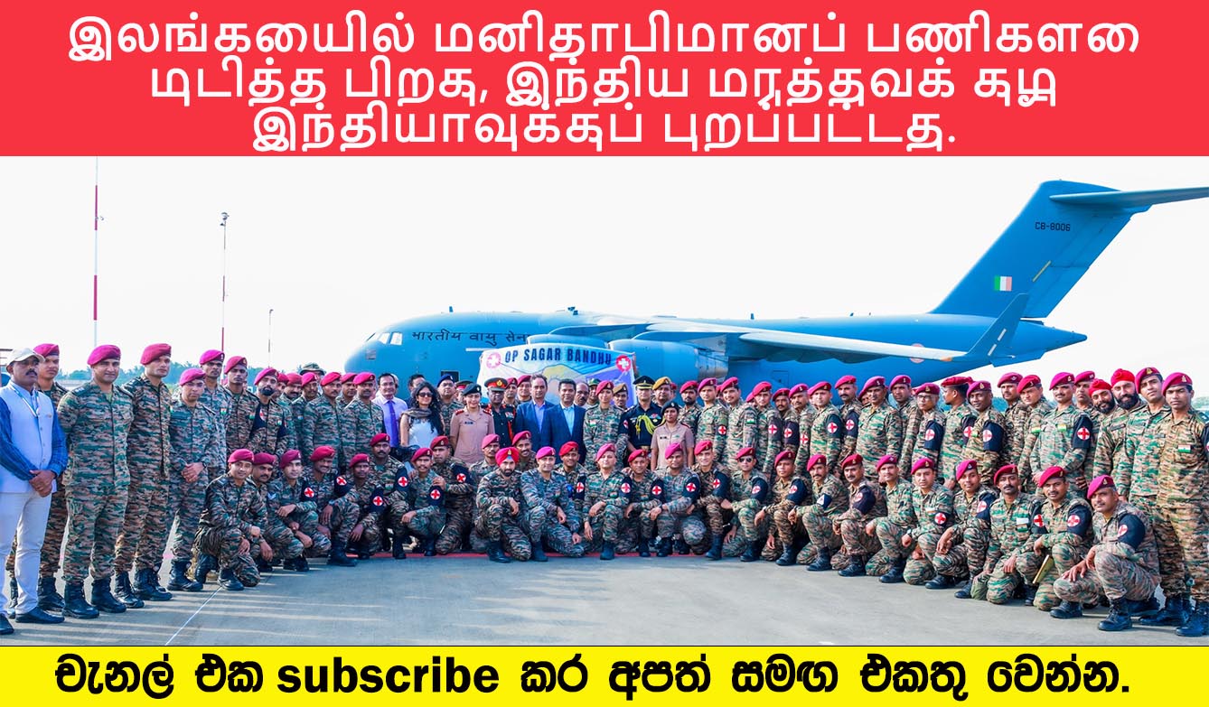 Post Views: 59 ஆபரேஷன் சாகர் பந்துவின் கீழ் இலங்கை வந்த இந்திய மருத்துவக் குழு, இலங்கையில் மனிதாபிமானப் பணிகளை முடித்துவிட்டு நேற்று முன்தினம் (14) இந்தியா புறப்பட்டது. Post navigation කැලණි ගංගා නිම්නයේ පහත්බිම් ප්රදේශවලට මහ ගංවතුර රතු නිවේදනයක්. නත්තල වෙනුවෙන් ‘‘බලාපොරොත්තුවේ පහන්‘‘ (Lights of hopes)