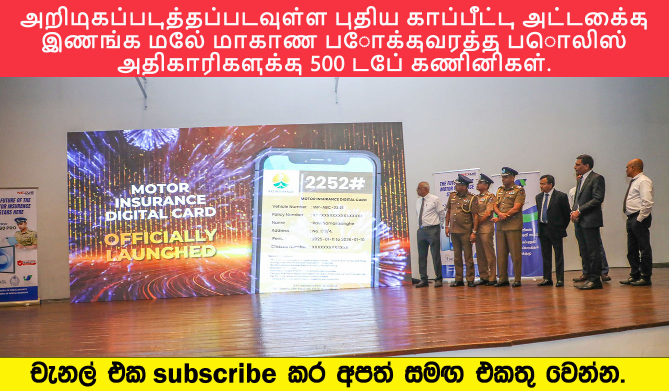Post Views: 57 இந்நாட்டில் தனிநபர்கள் தங்களுடைய வாகனங்களுக்கு காப்பீட்டு நிறுவனங்களிடமிருந்து ஆண்டுதோறும் பெறும் பிளாஸ்டிக் காப்பீட்டு அட்டை எதிர்காலத்தில் நீக்கப்படவுள்ளது. அதற்குப் பதிலாக, இலங்கை காப்பீட்டு ஒழுங்குமுறை ஆணைக்குழுவின் தலையீட்டின் கீழ் உருவாக்கப்பட்ட புதிய நிரந்தர டிஜிட்டல் காப்பீட்டு அட்டையை வழங்குவதற்கான நடவடிக்கைகள் தற்போது முன்னெடுக்கப்பட்டு வருகின்றன. வீதிகளில் காப்பீட்டு அட்டையைச் சரிபார்க்கும் பொலிஸ் அதிகாரிகள் உள்ளிட்ட பொலிஸ்மா அதிபர் சட்டத்தரணி பிரியந்த வீரசூரிய அவர்களும், சிரேஷ்ட பொலிஸ் அதிகாரிகளும் இப் புதிய நடைமுறை தொடர்பாக அறிவுறுத்தப்படுவதற்காக, பொதுமக்கள் பாதுகாப்பு அமைச்சும், இலங்கை காப்பீட்டு ஒழுங்குமுறை ஆணைக்குழுவும் இணைந்து ஏற்பாடு செய்த விசேட கூட்டம் ஒன்று 2026.01.07 அன்று மாலை, பொதுமக்கள் பாதுகாப்பு மற்றும் பாராளுமன்ற விவகார அமைச்சின் கேட்போர் கூடத்தில் நடைபெற்றது. இக் கூட்டத்திற்கு கௌரவ பாராளுமன்ற விவகாரங்கள் மற்றும் பொதுமக்கள் பாதுகாப்பு அமைச்சர் திரு. ஆனந்த விஜயபால, கௌரவ பிரதி அமைச்சர் திரு. சுனில் வட்டகல, பொதுமக்கள் பாதுகாப்பு அமைச்சின் செயலாளர் திரு. ரவி செனவிரத்ன மற்றும் பொலிஸ்மா அதிபர் சட்டத்தரணி திரு. பிரியந்த வீரசூரிய ஆகியோர் தலைமையேற்று பங்கேற்றனர். இந்நிகழ்வில், இலங்கை காப்பீட்டு ஒழுங்குமுறை ஆணைக்குழுவின் தற்போதைய தலைவர் கலாநிதி அஜித் ரவீந்திர டி மெல் அவர்கள், புதிய டிஜிட்டல் காப்பீட்டு முறைமையின் நோக்கங்கள் மற்றும் அதனால் கிடைக்கும் நன்மைகள் குறித்து பிரதான உரையொன்றை நிகழ்த்தினார். தற்போது பயன்பாட்டிலுள்ள பிளாஸ்டிக் காப்பீட்டு அட்டைகள் ஆண்டுதோறும் காலாவதியாகி சுற்றுச்சூழலுக்கு ஏற்படுத்தும் பாதிப்புகள், புதிய அட்டைகளைத் தயாரிப்பதற்கான அதிக நிதிச் செலவுகள் மற்றும் காப்பீட்டுத் துறையில் அவ்வப்போது எழும் பல்வேறு சிக்கல்களைத் தீர்க்க இப் புதிய டிஜிட்டல் முறைமை உதவியாக அமையும் என அவர் பொலிஸ் அதிகாரிகளிடம் தெரிவித்தார். மேம்படுத்தப்பட்ட இலங்கை பொலிஸின் வீதி விபத்து தரவுகள் முகாமைத்துவ அமைப்பை எளிதாக பயன்படுத்துவதற்கும், புதிய டிஜிட்டல் காப்பீட்டு ஈ-அட்டையை நடைமுறைப்படுத்துவதற்கான தொழில்நுட்ப சாதனமாகவும், மேல் மாகாண போக்குவரத்து பொலிஸ் அதிகாரிகளுக்கு மொத்தமாக 500 டேப் கணினிகள் வழங்கும் திட்டம் ஆரம்பிக்கப்பட்டது. இதன் அடையாளமாக, நிகழ்வின் போது 150 டேப் கணினிகள் குறியீட்டு முறையில் பொலிஸ் அதிகாரிகளுக்கு வழங்கப்பட்டன. இந்நிகழ்வில் இலங்கை காப்பீட்டு ஒழுங்குமுறை ஆணைக்குழுவின் பணிப்பாளர் நாயகம் திருமதி தமயந்தி பெர்