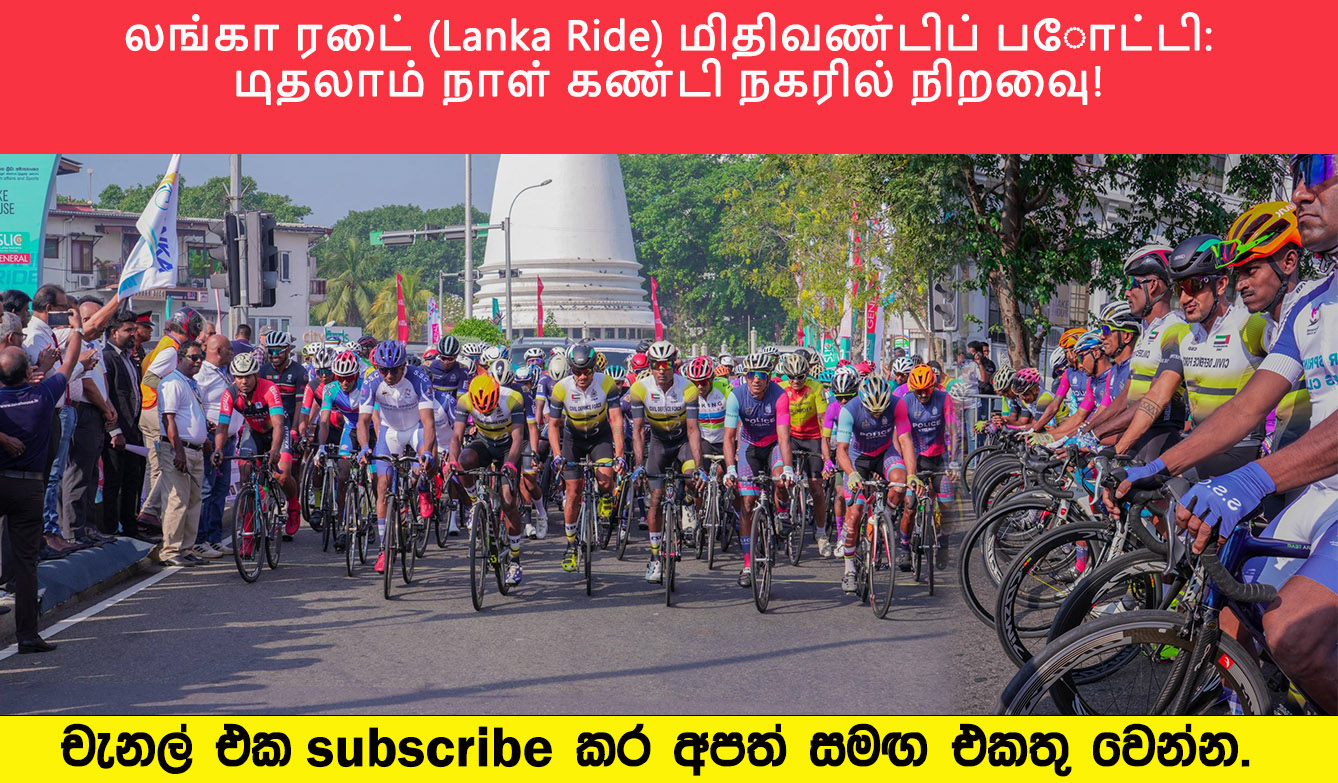 Post Views: 249 இளைஞர் விவகார மற்றும் விளையாட்டு அமைச்சினால் ஏற்பாடு செய்யப்பட்டுள்ள “லங்கா ரைட்” (Lanka Ride) மிதிவண்டிப் போட்டி இன்று (16ஆம் திகதி) காலை 9:00 மணிக்கு லேக் ஹவுஸ் நிறுவனத்திற்கு முன்னால் ஆரம்பமானது. இந்நிகழ்வில் போக்குவரத்து, நெடுஞ்சாலைகள் மற்றும் நகர அபிவிருத்தி அமைச்சர் பிமல் ரத்நாயக்க, இளைஞர் விவகார மற்றும் விளையாட்டுத்துறை அமைச்சர் சுனில் குமார கமகே, விளையாட்டுத்துறை பிரதி அமைச்சர் சுகத் திலகரத்ன, அமைச்சின் செயலாளர் அருண பண்டார மற்றும் விளையாட்டு மேம்பாட்டுத் திணைக்களத்தின் பணிப்பாளர் நாயகம் எஸ். அச்சுதன் ஆகியோர் கலந்துகொண்டனர். அத்துடன் லேக் ஹவுஸ் நிறுவனத்தின் தலைவர் காமினி வருஷமான, ஆசிரியர் பீட பணிப்பாளர் சிசிர யாப்பா மற்றும் இராணுவம், விமானப்படை, பொலிஸ் உயர்மட்ட அதிகாரிகள் பலரும் இதில் பங்கேற்றனர். போட்டியின் முதலாம் நாள் கண்டி நகரில் நிறைவடைந்தது. இதன் இரண்டாம் கட்டம் நாளை கண்டியில் ஆரம்பமாகி அனுராதபுரம் வரை நடைபெறவுள்ளது. 18ஆம் திகதி போட்டி அனுராதபுரத்திலிருந்து கொழும்பு நோக்கித் திரும்பும். இந்த சுற்றுப்போட்டியில் 27 அணிகளைச் சேர்ந்த வீரர்கள் கலந்துகொண்டுள்ளனர். பதிவுகளைத் தொடர்ந்து போட்டி உத்தியோகபூர்வமாக ஆரம்பித்து வைக்கப்பட்டது. முதல் கட்ட முடிவுகள் (கண்டி): 01,முதலிடம்: எச்.டபிள்யூ.எம்.எஸ். பிந்து (இலங்கை இராணுவம்) – நேரம்: 2 மணி 52 நிமிடம் 41 வினாடிகள். 02,இரண்டாமிடம்: ஏ.டி.எஸ். பெரேரா (இலங்கை இராணுவம்). 03,மூன்றாமிடம்: தேஷான் கவிந்த (ஜா-எல பிளாஷ் அணி). 04,நான்காமிடம்: சுரங்க ரணவீர. 05,ஐந்தாமிடம்: சிதும் பூர்ண. நாளை காலை 9:00 மணிக்கு கன்னொருவ விவசாய ஆராய்ச்சி நிலையத்திற்கு முன்னால் இரண்டாம் நாள் போட்டி ஆரம்பமாகும். Post navigation Lanka Ride පාපැදි සවාරිය අද (16) උදෑසන ලේක් හවුස් ආයතන ඉදිරිපිටින් ආරම්භ විය. தேசிய ஊக்கமருந்து தடுப்பு முகமையின் உத்தியோகபூர்வ இணையத்தளம் மற்றும் மருந்து விசாரணை செயலி வெளியீடு.