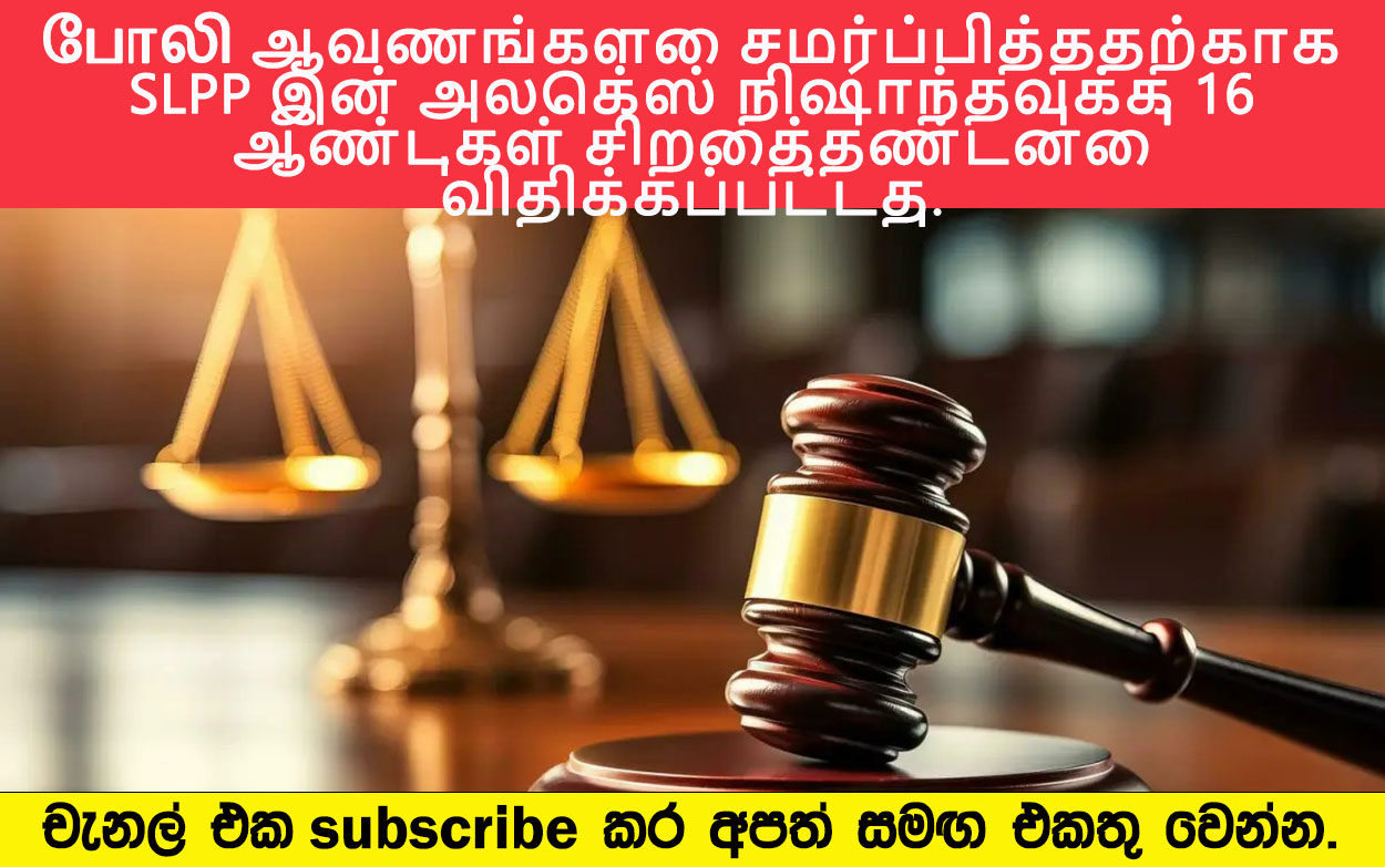 Post Views: 94 போலி ஆவணங்களைத் தயாரித்ததாகக் குற்றம் சாட்டப்பட்ட இருவருக்கு தலா 16 ஆண்டுகள் சிறைத்தண்டனை விதிக்கப்பட்டது. போலி ஆவணங்களைத் தயாரித்த சம்பவம் தொடர்பான வழக்கு சிலாபம் உயர் நீதிமன்ற நீதிபதி நவோமி விக்ரமசிங்க முன்னிலையில் (18) விசாரணைக்கு வந்தது. ஜூன் (07) 2011 அன்று குற்றப் புலனாய்வுத் துறைக்குக் கிடைத்த முறைப்பாட்டின் அடிப்படையில் விசாரணை நடத்தப்பட்டது. காணித்துண்டுகளுக கு 26 போலி பத்திரங்களைத் தயாரித்து அவற்றக விற்பனை செய்தது தொடர்பாக விசாரணை நடத்தப்பட்டது. இதன்படி, வென்னப்புவ பிரதேச சபையின் ஸ்ரீலங்கா பொதுஜன பெரமுன உறுப்பினர் அலெக்ஸ் நிஷாந்த பெர்னாண்டோ மற்றும் மஹவெவ பிரதேசத்தை சேர்ந்த ஒருவருக்குமே இந்த தண்டனை விதிக்கப்பட்டுள்ளது. Post navigation “ගෑස් හිඟයක් නැහැ. බොරුවට කළබලවී තොග රැස් කරන්න එපා” ලිට්රෝ සභාපති කියයි. වැලිගම W15 හෝටලයේ වෙඩි තැබීමේ සිදුවීමට සැකකරුවෙකු වූ හිටපු පොලිස් පරීක්ෂක ජගත් නිශාන්ත අත් අඩංගුවට.